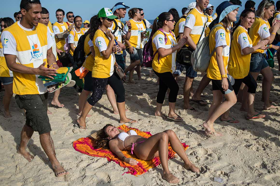 Enquanto falamos, chegam cinco peregrinos da Venezuela, que se ofereceram como voluntários. Fizeram 18 horas de autocarro até à fronteira, depois mais dez horas de avião, tudo pago por eles, entre família, amigos, paróquia. Estão a dormir em sacos-cama numa paróquia da periferia, como a grande maioria dos 350 mil peregrinos esperados para a Jornada Mundial da Juventude, bem longe dos cartões-postais do Rio.