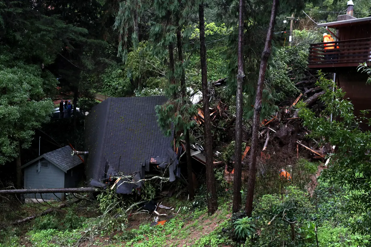 O cenário é desolador no norte da Califórnia, onde um deslizamento de terra arrancou uma casa do chão e precipitou-a encosta abaixo, até embater noutra residência, na sequência de um fenómeno meteorológico conhecido como "rio atmosférico"