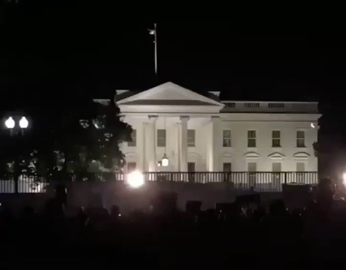 The White House went dark, turning off almost all of its external lights. Thousands of demonstrators gather near the White House, part of nationwide protests over the death of George Floyd. #blacklivesmatter #georgefloyd #icantbreathe #endracism #floyd #washingtondc